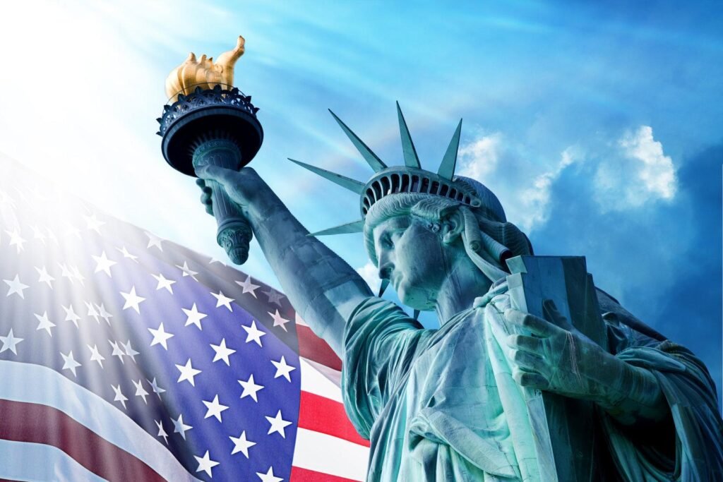 The Statue of Liberty adorns New York’s licenses, serving as a proud emblem of the country’s history of immigration and freedom.